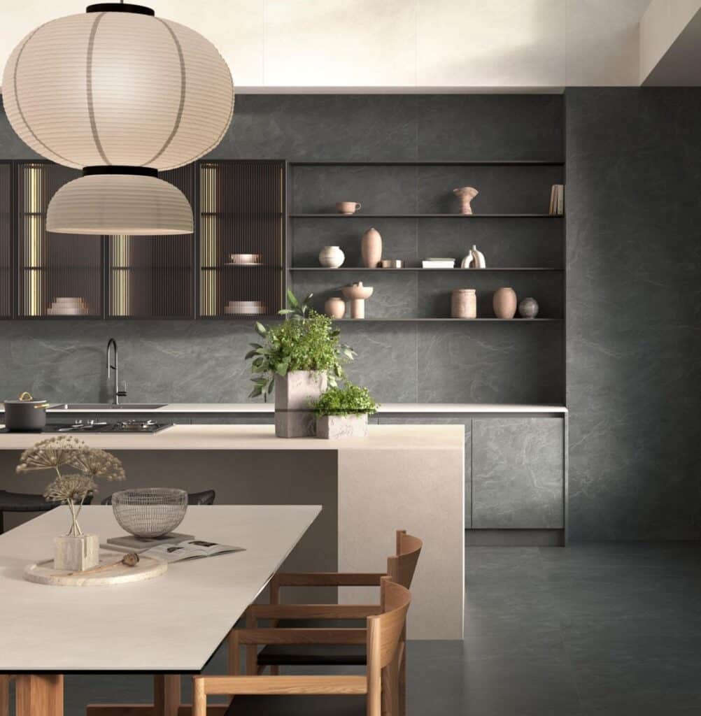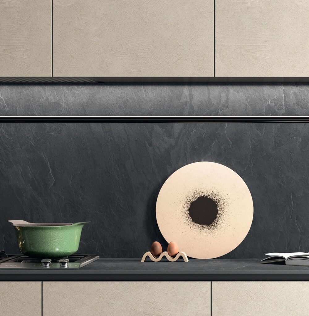 Slate Vulcano is ideal for wall cladding, flooring, kitchen countertops and custom interior elements. It pairs especially well with lighter tones, adding balance while maintaining a strong design statement.