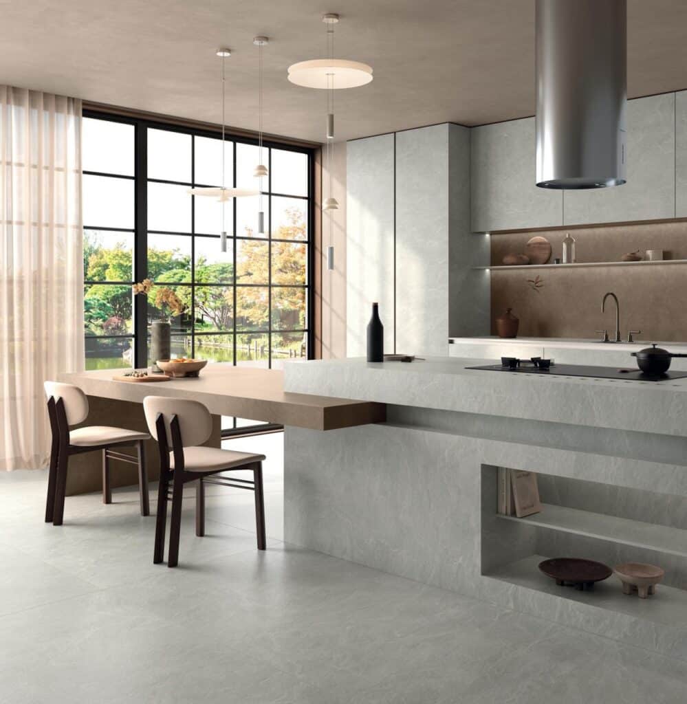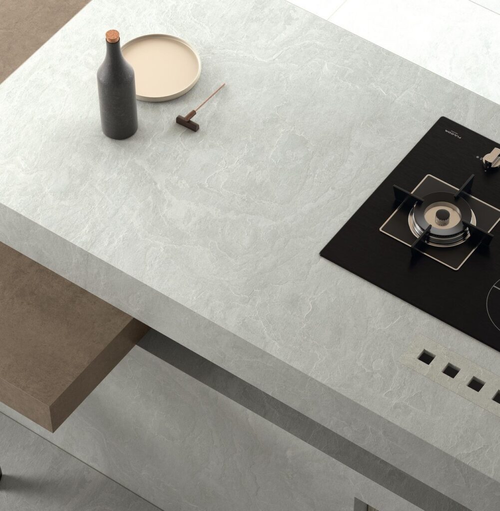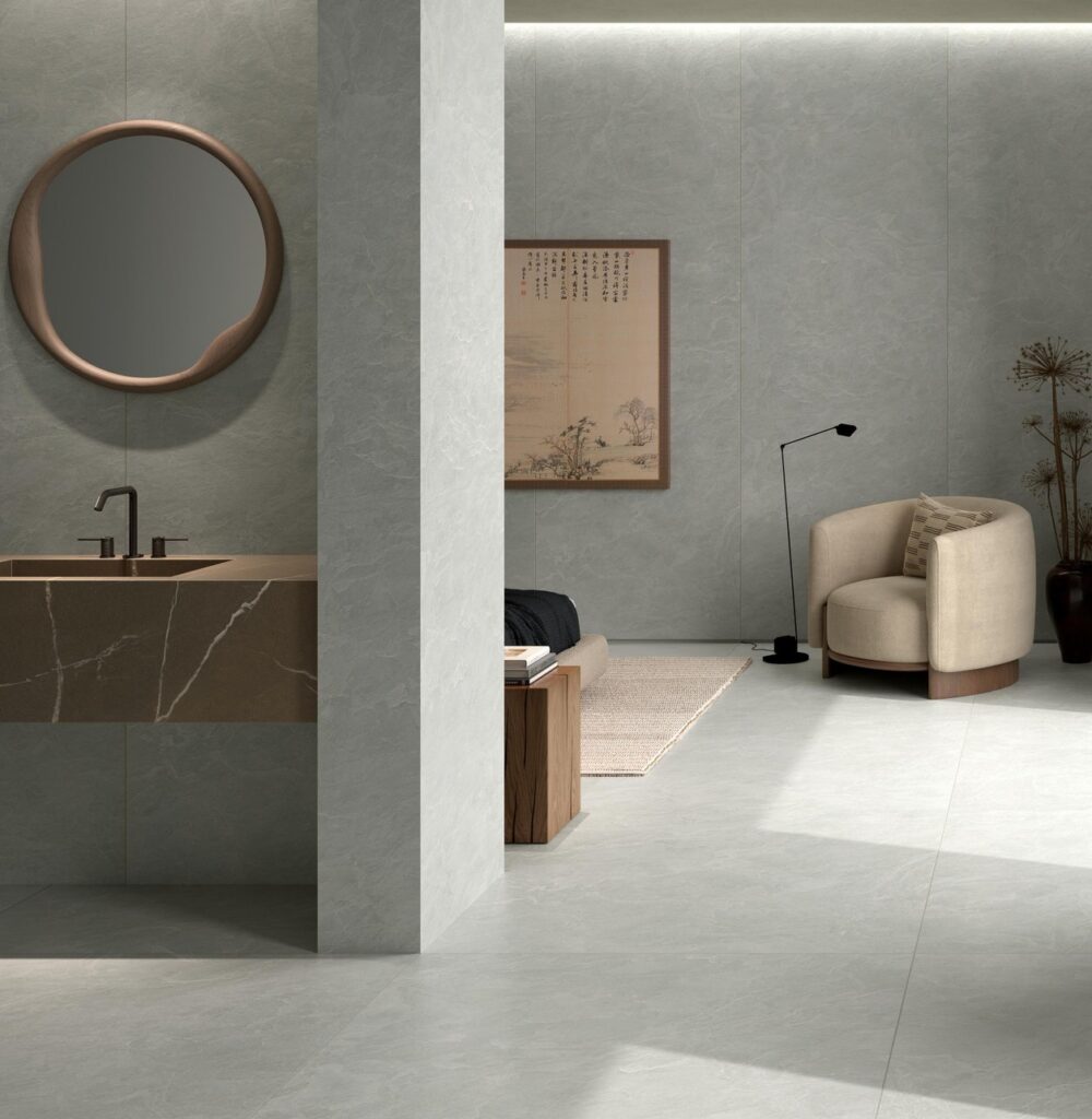 Slate Ankara is a Laminam ceramic surface inspired by the natural elegance of stone, combining softness, depth and exceptional versatility. Its refined neutral grey tone creates a calm and balanced aesthetic, making it a perfect choice for modern interiors influenced by minimalist and Zen inspired design.