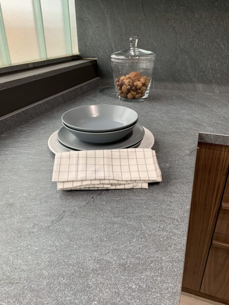 What sets Pietra di Cardoso Grigio apart is Laminam’s IN-SIDE technology, which ensures continuity between the surface and the internal body of the slab. This full body ceramic structure allows the material to be processed, cut and finished from every angle, creating a consistent and high end result even in visible edges and details.