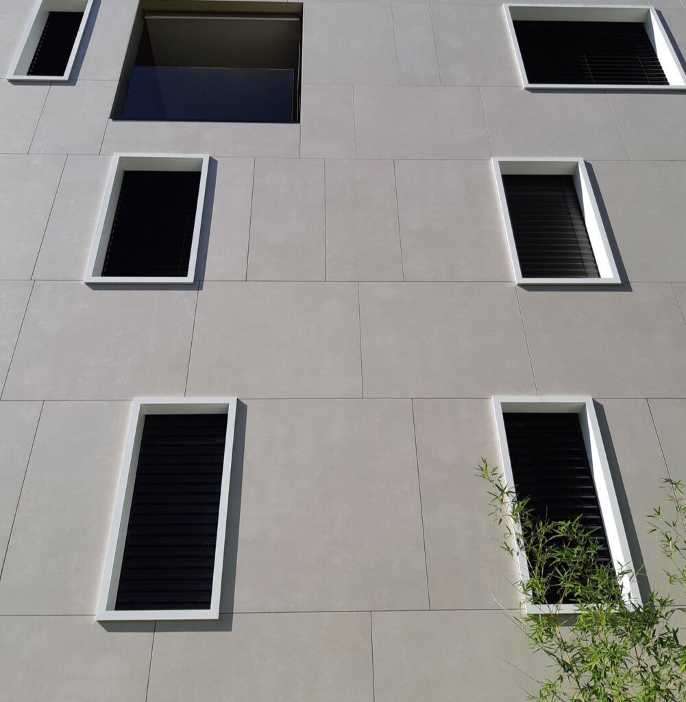 Laminam surfaces from this collection are suitable for both interior and exterior cladding, including façades of modern residential buildings. The R9 anti slip finish extends its use to areas exposed to water.