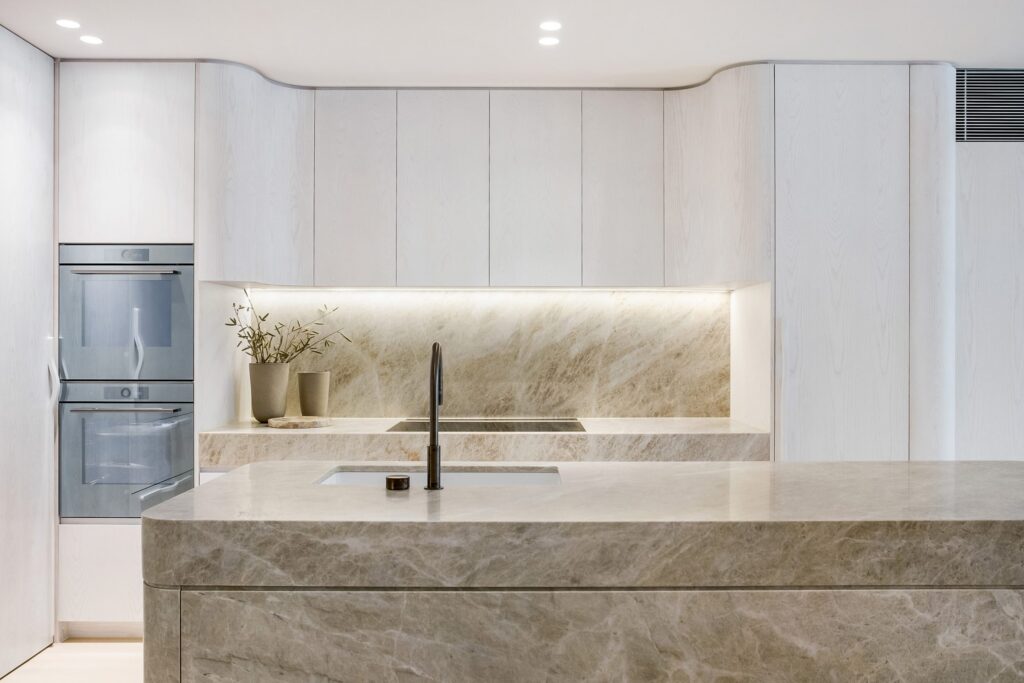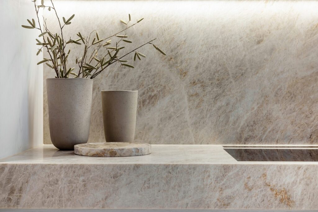 These surfaces are also ideal for use in smaller spaces, but they really shine in the Book Match version: bookmatching is a technique where two or more slabs are positioned in a mirrored arrangement to create a unique and harmonious design able to bring out the best of the texture.
