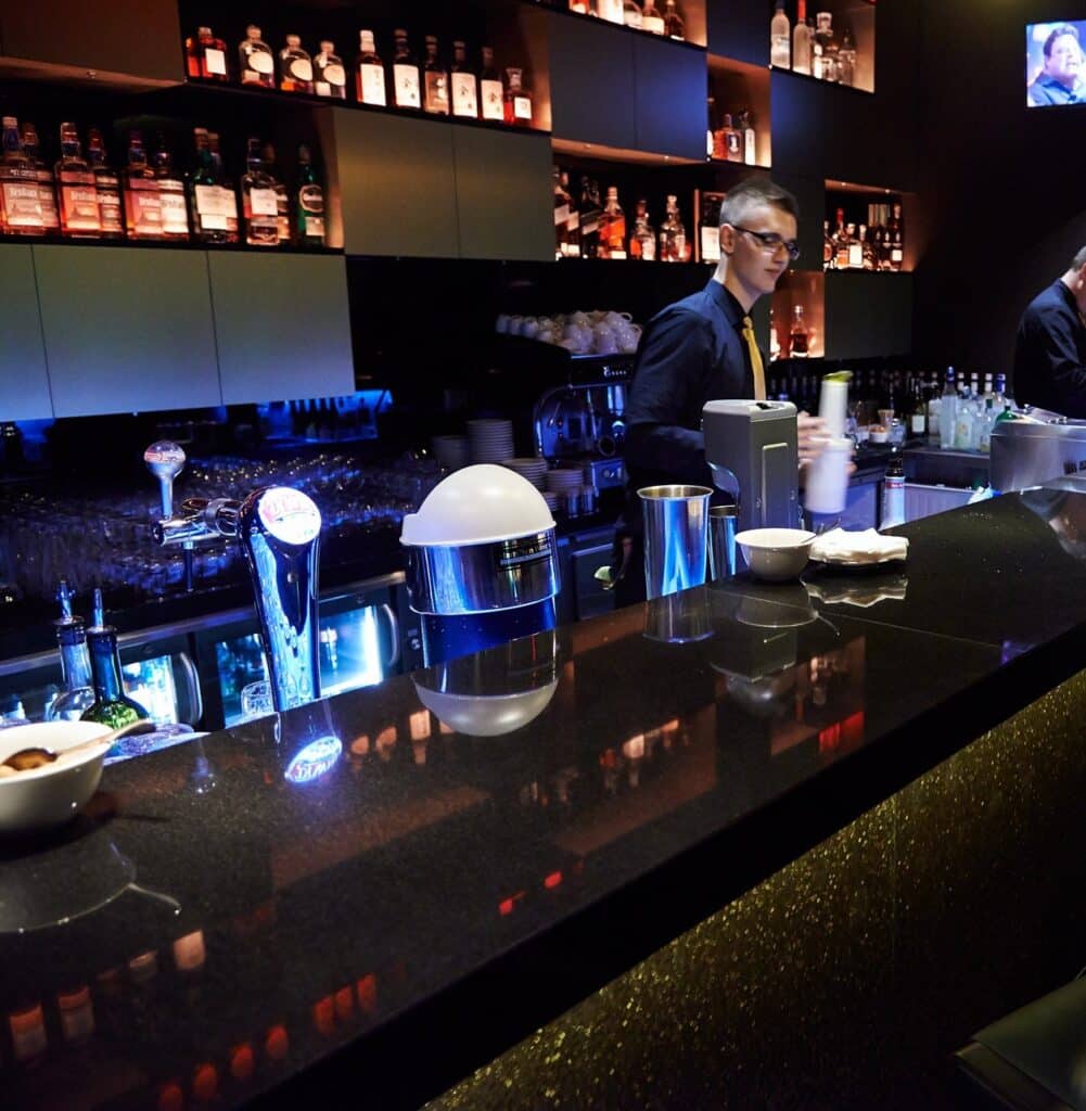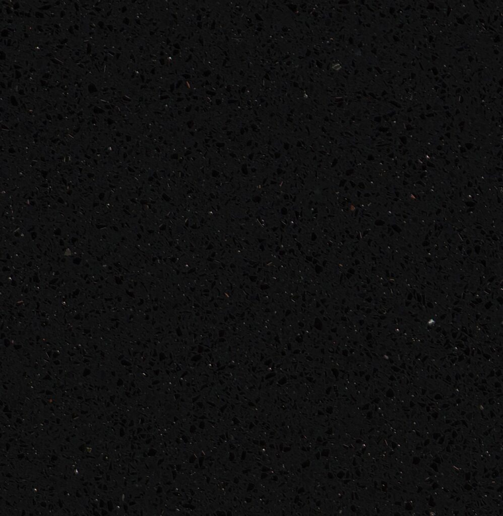 Technistone Brilliant Black is a high quality engineered quartz surface from the Standard Collection. It features a rich black base accented by subtle reflective particles that create a refined shimmering effect and add elegant visual depth to the surface.