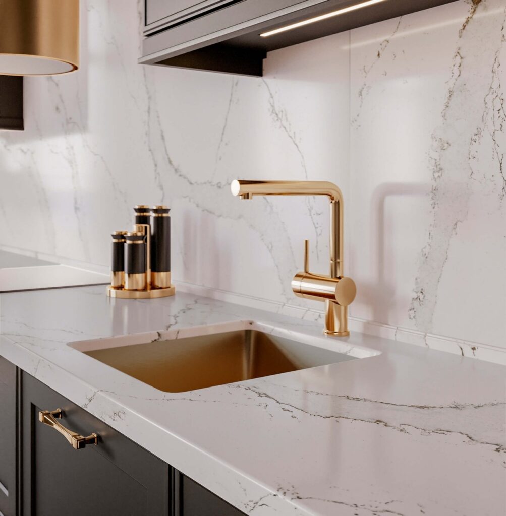 It is a durable and practical material, perfectly suited for everyday use in both kitchens and bathrooms.