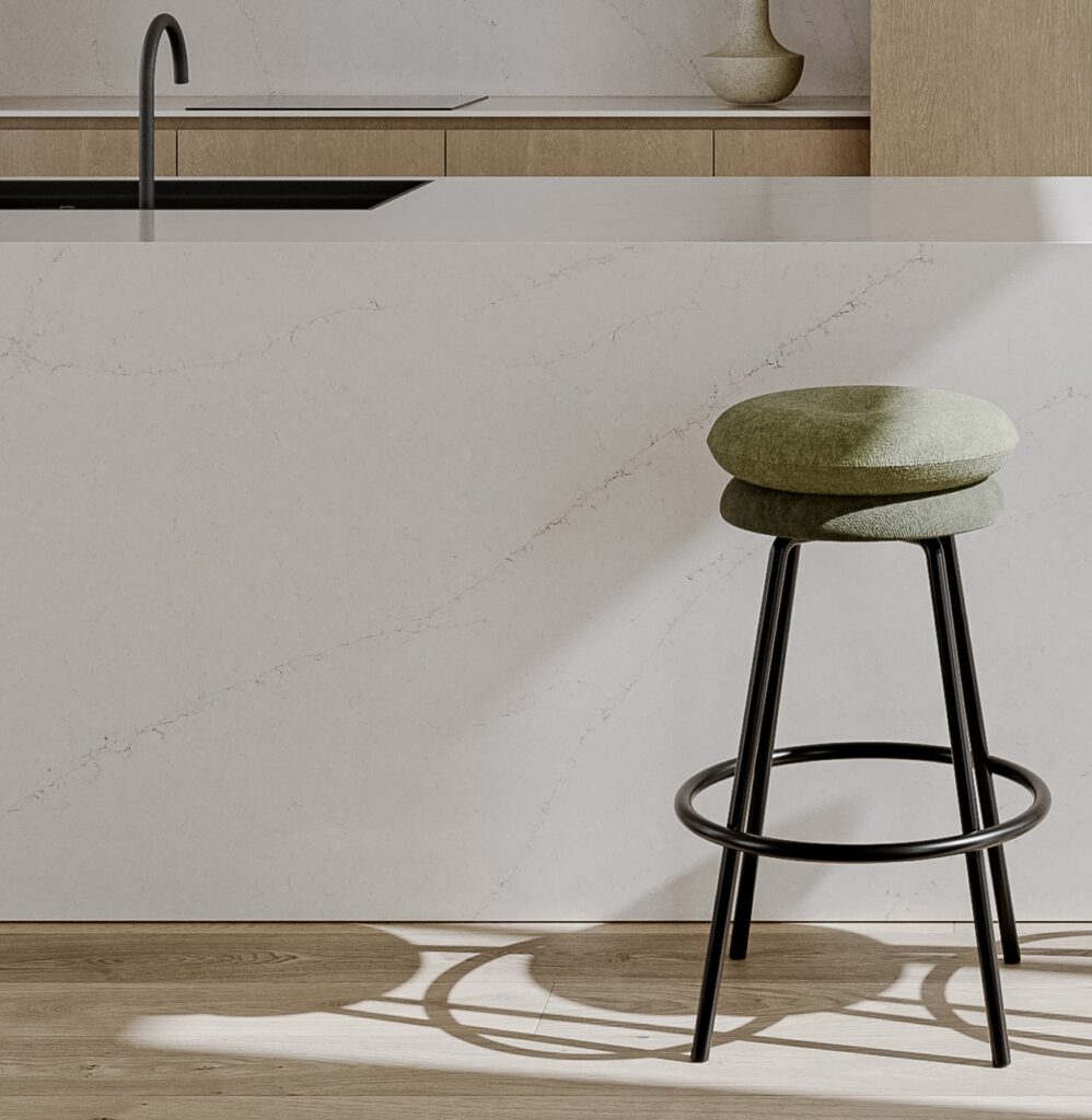 Technistone Mistral White is a high-quality engineered quartz stone inspired by the look of light natural marble. Its soft white tone and subtle pattern create a clean and timeless appearance, making it a perfect fit for modern and Scandinavian interiors.