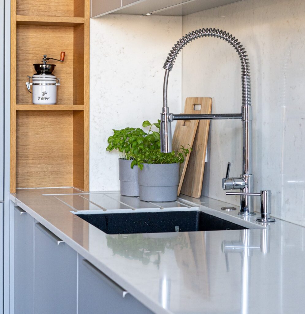 It is a durable and practical material, perfectly suited for everyday use in both kitchens and bathrooms.