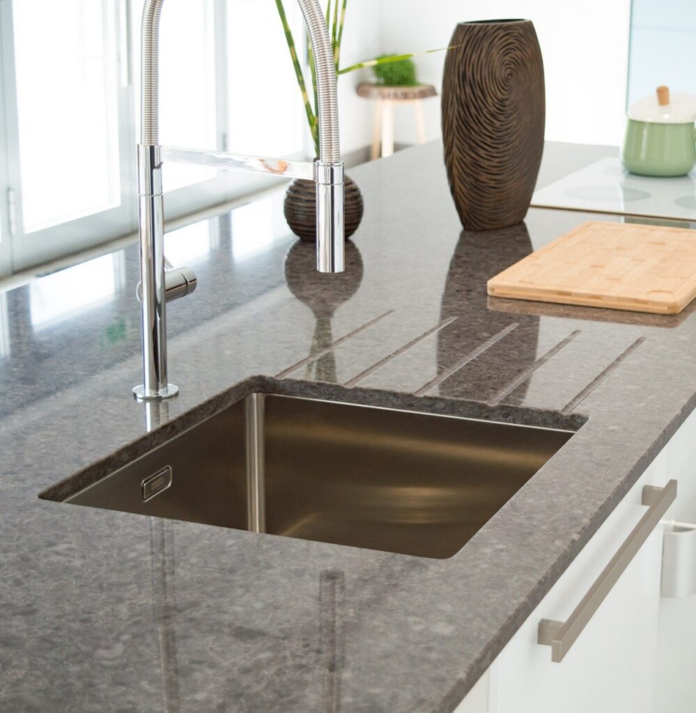 It is a durable and practical material, perfectly suited for everyday use in kitchens, bathrooms and high traffic areas. Quartz surfaces are valued for their durability, low maintenance and long lasting aesthetic appeal.