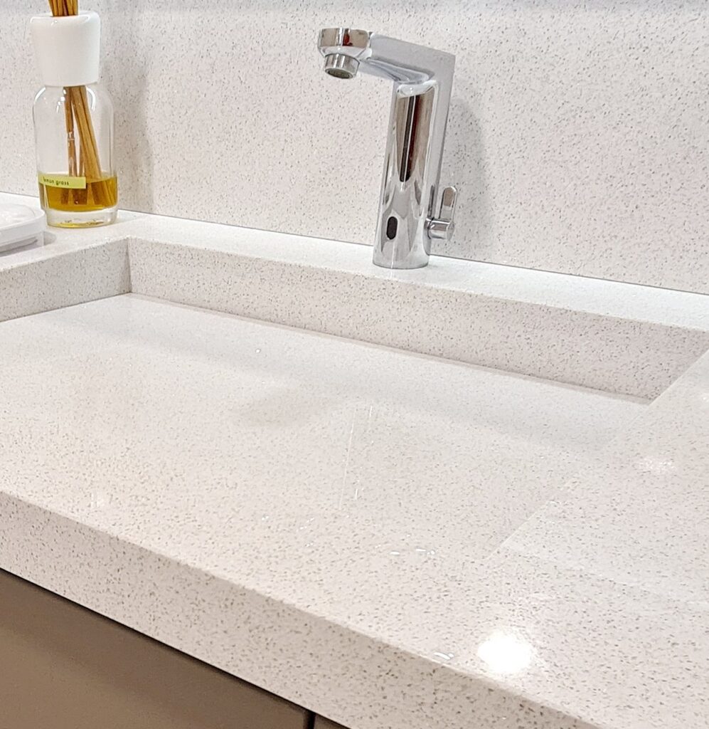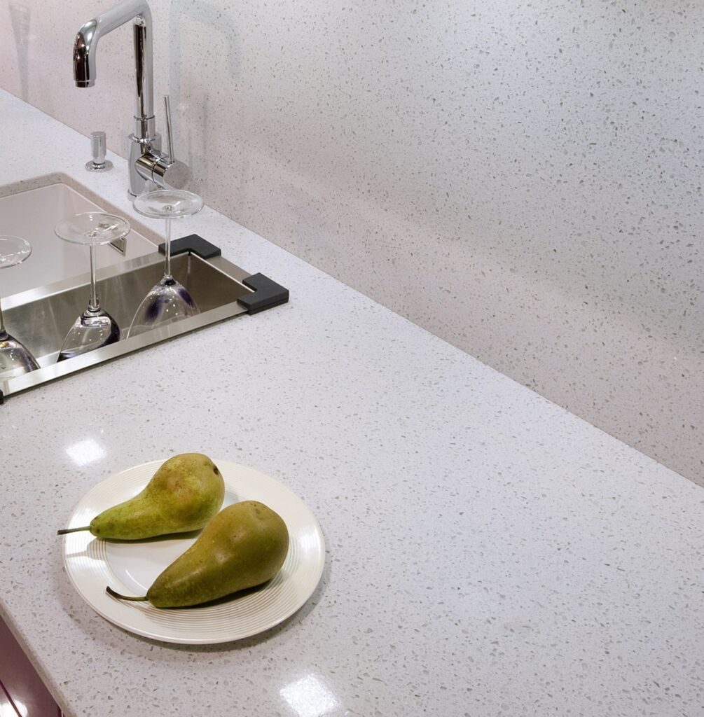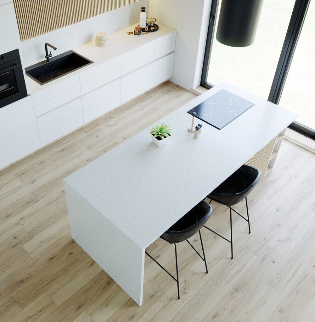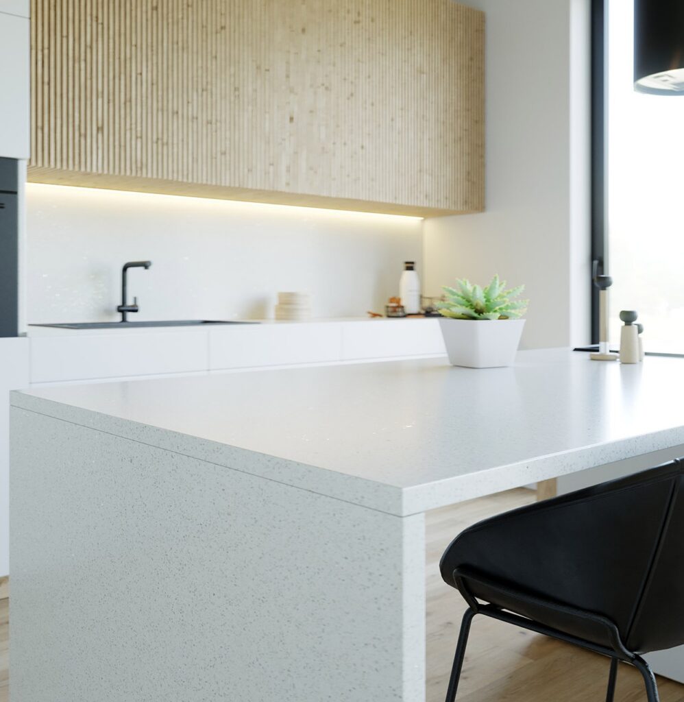 Technistone Starlight White is a high-quality engineered quartz stone from the Standard Collection. Its clean white base combined with subtle sparkling particles creates a bright and elegant appearance with a refined shimmer, making it a perfect choice for both modern and classic interiors.