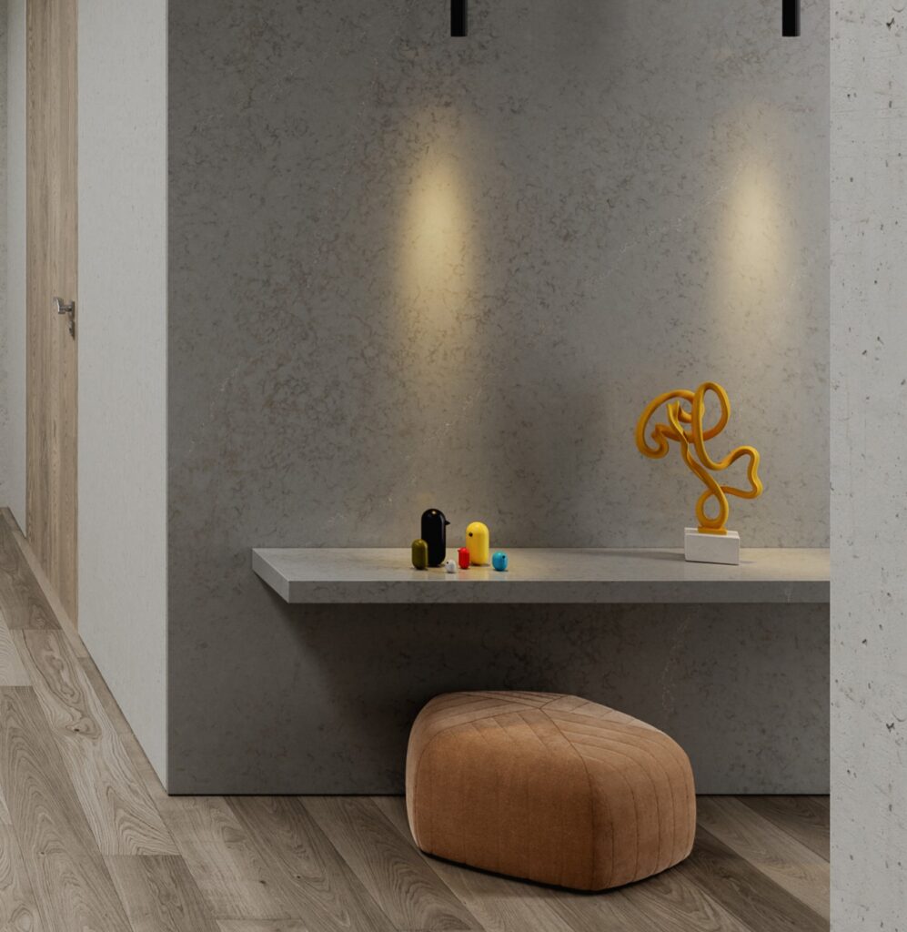 Technistone Badal Grey is a high-quality engineered quartz stone from the La Natura Collection. Its design is inspired by concrete surfaces and modern industrial style, featuring subtle grey tones with delicate veining that create a minimalist and contemporary look.
