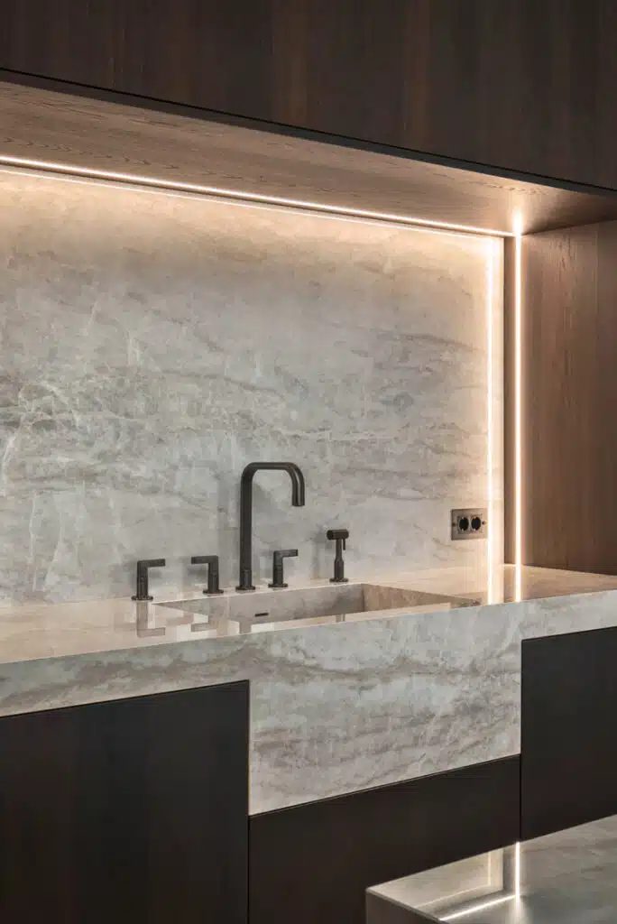 Integrated stone sinks are made from the same material as the countertop. These bespoke sinks are a hit because they look irresistible. Each sink is custom made, can be made from any material, with any dimension, design and accessories that the customer likes.
