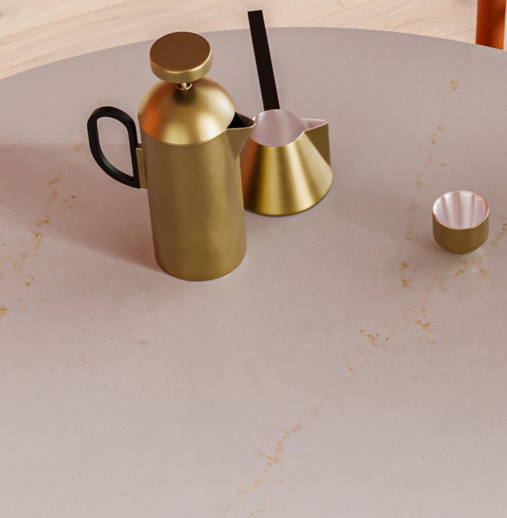 Technistone Elysian Gold on kvaliteetne kvartsist tehiskivi, mille disain on inspireeritud looduslikust kvartsist ja marmorist. Selle kuldsed, hallid ja valged toonid koos väljapaistva mustriga loovad luksusliku ja pilkupüüdva välimuse, sobides ideaalselt nii modernsesse kui ka eksklusiivsesse interjööri.
