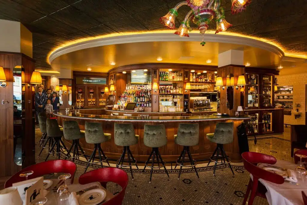 Authentic Italian restaurant Italiano in Stockholm. Unique restaurant with tri-color rounded marble masterpieces.