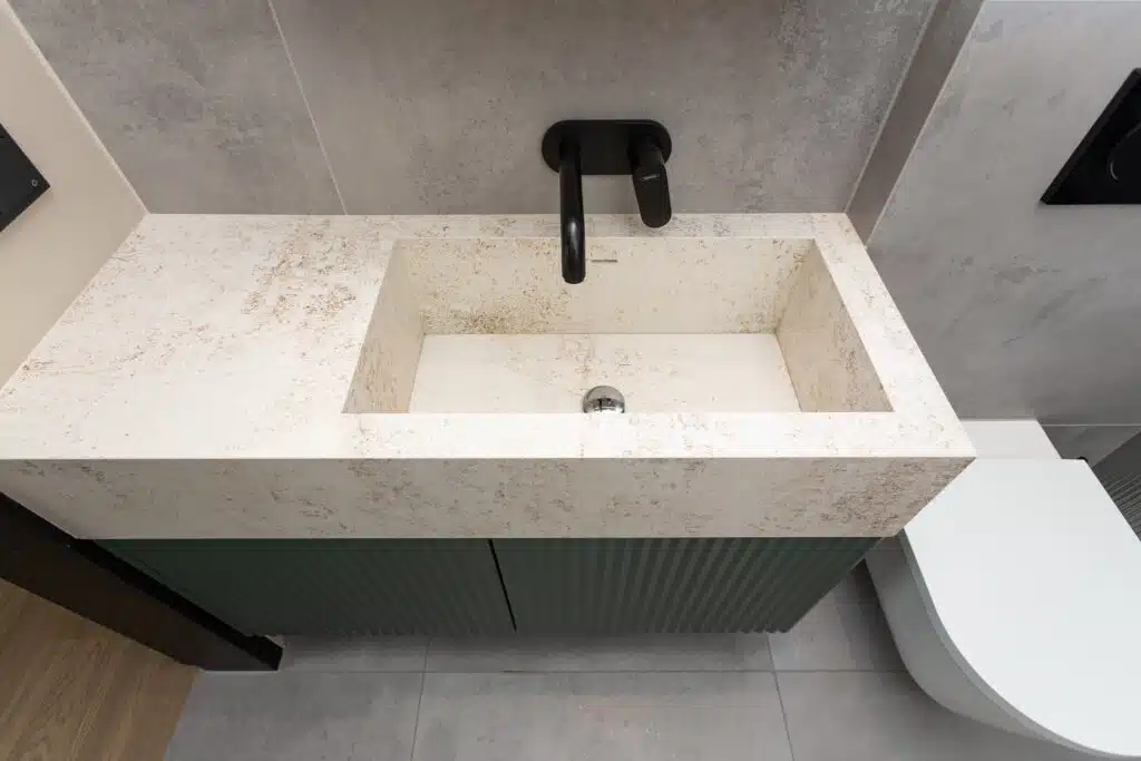 Custom stone sinks for bathroom can be fabricated from any stone material.